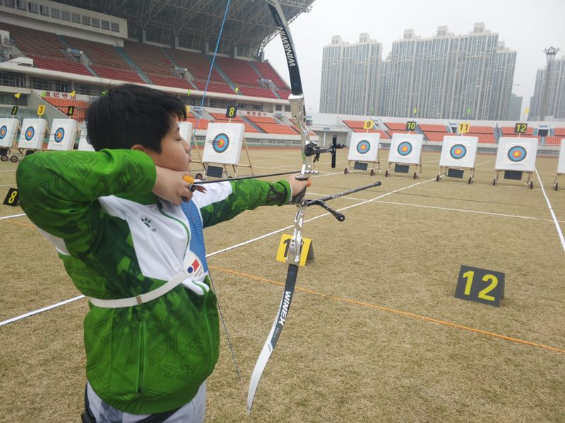 披上武汉市战袍出征省锦标赛 武汉经开外国语学校七年级三班王奕雄同学在射箭项目中获男子团体18米轮赛第一名